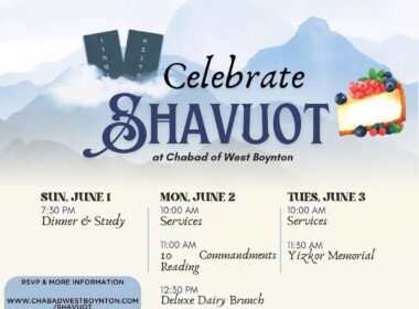 Latest Stories Celebrate Shavuot at Chabad of West Boynton! May 29, 2025 Join us for a meaningful and joyful Shavuot filled with inspiration, tradition, and delicious dairy delights! Sunday, June 1🕢 7:30 PM...