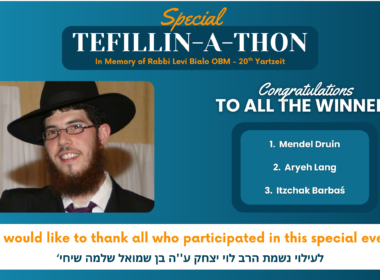Hero Story 1 Honoring Rabbi Levi Bialo OBM: Celebrating the Tefillin-a-Thon Winners May 12, 2025 We are proud to announce and congratulate the winners of the special Tefillin-a-Thon held in loving memory of Rabbi Levi Bialo...
