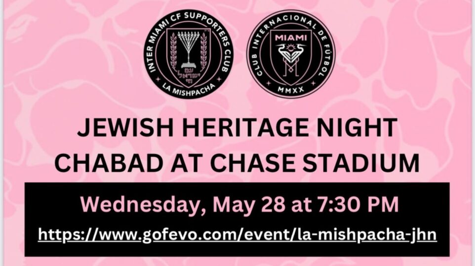 Latest Stories Exciting Announcement: Jewish Heritage Night at Chase Stadium! Mark your calendars for an unforgettable evening!Join Chabad at Chase Stadium for Jewish Heritage Night on Wednesday, May 28 at 7:30 PM. Celebrate community and spirit with a special pre-game tailgate (highlighted on the... April 27, 2025
