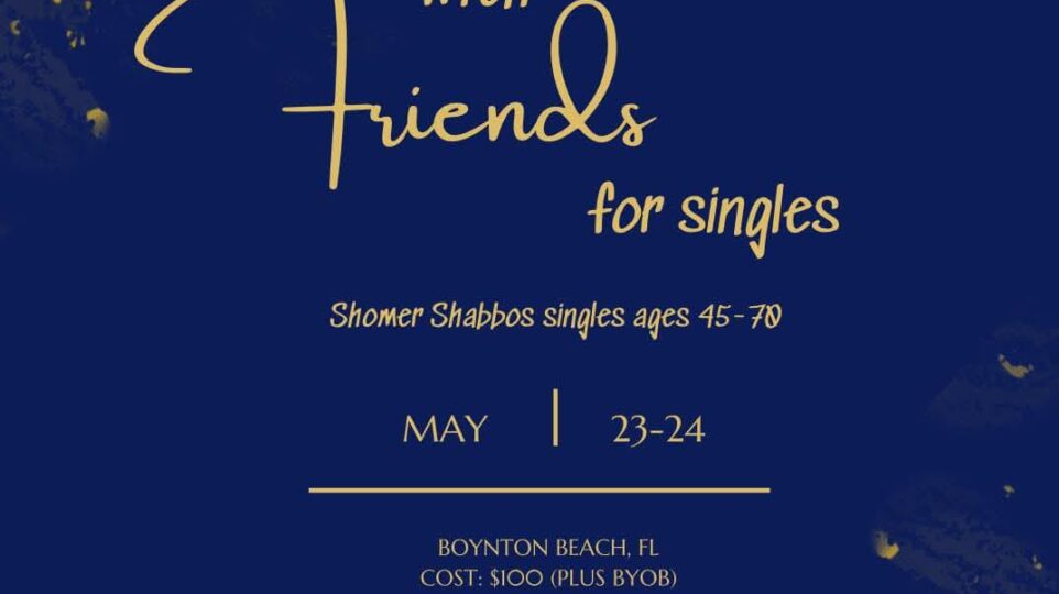 Latest Stories Shabbos with Friends – A Meaningful Weekend for Singles Ages 45-70 Looking for a heartfelt way to connect with like-minded singles this spring? Beit Chaverim is excited to host “Shabbos with Friends” – a warm, welcoming Shabbos weekend exclusively for Shomer Shabbos singles ages 45-70.... April 16, 2025