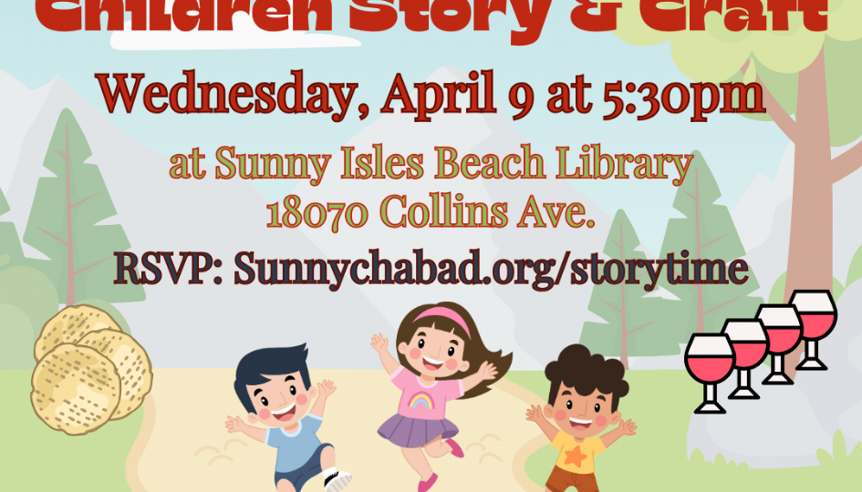 Latest Stories Join Us for a Fun-Filled Pre-Passover Story & Craft Event! Get ready for an exciting and festive evening! Join us on Wednesday, April 9 at 5:30 PM at the Sunny Isles Library, located at 18070 Collins Avenue, for a delightful pre-Passover story and craft... April 6, 2025