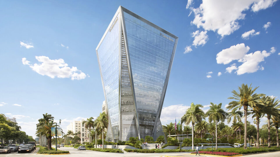 Latest Stories Safra National Bank tower in Miami tops out The Safra National Bank tower at 3050 Aventura Boulevard in Miami has topped out. The 210-foot building, located at a prime corner site in Aventura, features two interlocking prisms that converge at the second... March 14, 2025