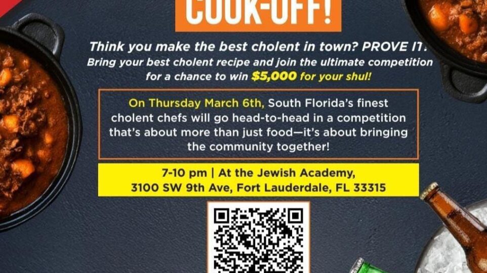 Latest Stories Men’s Great Chulent kickoff! On Thursday March 6th, South Florida’s finestcholent chefs will go head-to-head in a competitionthat’s about more than just food-it’s about bringingthe community together! 7-10 pm | At the Jewish Academy,3100 SW 9th Ave, Fort... March 4, 2025