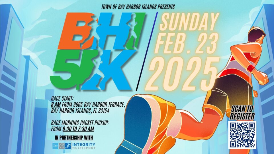 Latest Stories Annual Bay Harbor Islands 5K Run/Walk Sunday, February 23, 2025 Date: February 23, 2025 Where: The start will be adjacent to the Bay Harbor Islands Town Hall 9665 Bay Harbor Terrace, Bay Harbor Islands, FL 33154. Time: 8:00 AM - 12:00 PM Time Details:... February 11, 2025