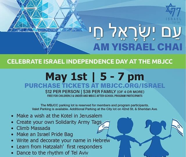 Latest Stories Celebrate Israel Independence Day at the Miami Beach JCC The Miami Beach Jewish Community Center (MBJCC) invites families and community members to a festive celebration of Israel’s 77th Independence Day on Wednesday, May 1, from 5:00–7:00 PM. This engaging event will feature fun... April 29, 2025